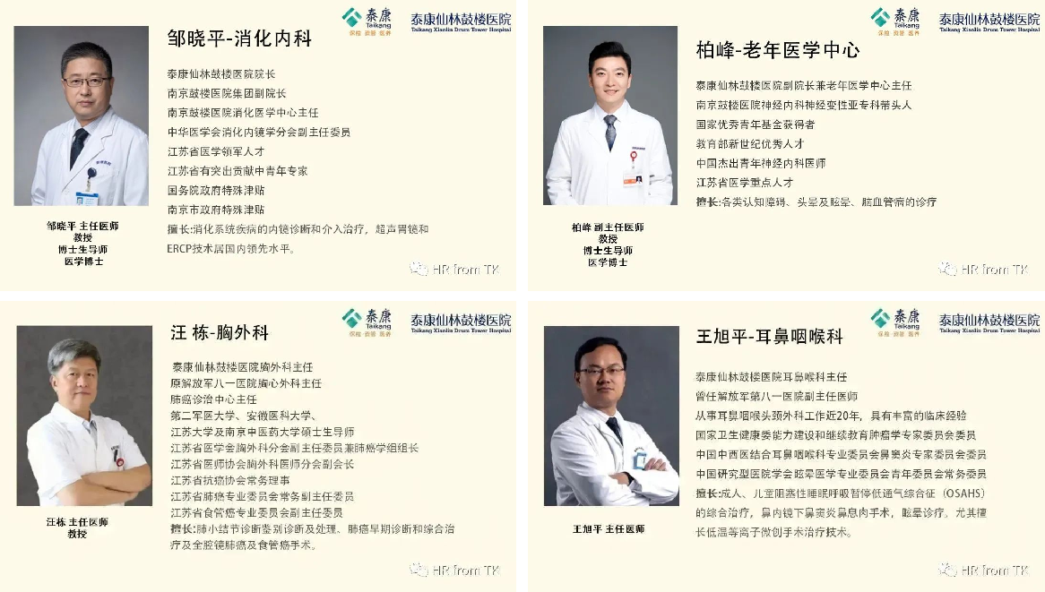 南京大学医学院附属泰康仙林鼓楼医院是泰康保险集团旗下首家医、教、研一体化大型综合三级医院,是鼓楼医院集团成员、武汉大学临床学院、美国西奈山医院附属医院,规划床位1400张。医院共有各类临床学科30多个,正逐步形成包含肿瘤中心、妇儿中心、健康管理中心、卒中中心、老年医学中心、创伤中心、胸痛中心等战略学科群,并拥有骨科、普通外科、呼吸内科、消化内科、神经内科和急诊医学科等多个优势学科。