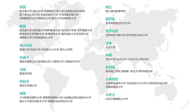 3.【国际视野】学校引入先进的教育模式和国际化的教学资源,与美国、英国、加拿大、法国、西班牙、马来西亚等10多个国家和地区的60余所国际知名高校建立了友好的交流与合作办学关系,使学生完全融于国际化氛围。学生可以选择适合自己的国际项目,真正体验到“双语言”“双校园”“双学位”的国际教育。近年来,学校的国际化教育获得多项国际认证:2019年5月,ACCA英国总部授予西安欧亚学院“ACCA黄金级教育机构”;2020年1月,休闲管理学院旅游管理专业通过联合国世界旅游组织教育质量认证;2020年4月,艾德艺术设计学院加入DESIS国际社会创新与可持续设计联盟。学校设立国际商学院,采用国际商科教育三大认证之一的欧洲EQUIS认证标准,为学生提供多元化的教育资源、智慧型的学习共建和国际化的校园生态资源。