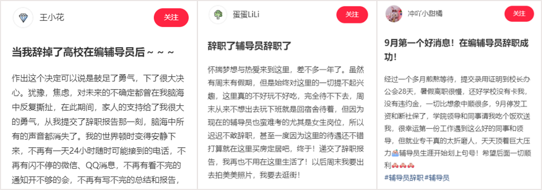 辅导员岗位“不限专业”“硕士可报”等优点吸引着众多人前来应聘,但不可忽视的是,辅导员岗位肩负着沉重的压力与责任。社交平台上并不缺少离职的辅导员,即使有编制也是。