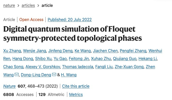 王震今年刚满30岁。从2021年成为浙江大学的一名特聘研究员后,短短一年多时间,他就以共同通讯作者身份在Nature上发表了一项重要研究:在超导系统中首次实现了拓扑时间晶体的全数字化量子模拟。