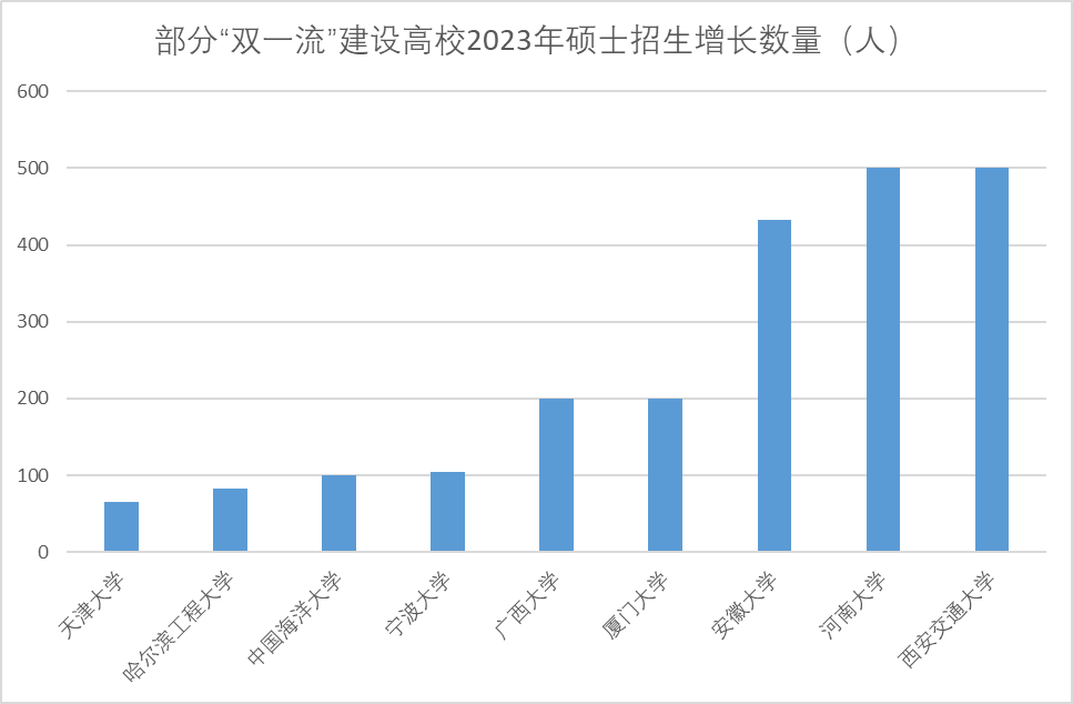 《报告》认为,总体来看,多数高校硕士研究生招生规模不断扩大,部分学校增长幅度较大。与2022年全国硕士研究生招生计划相比,2023年“双一流”高校招生计划均明显增长。其中,西安交通大学2023年计划招收硕士研究生7500人,相比2022年增加招生计划500人。