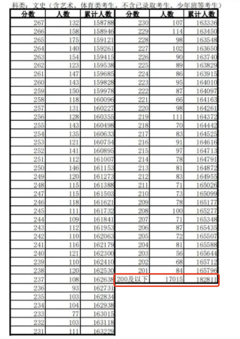 安徽省2022年普通高等学校招生统一考试考生成绩分档表(含加分)来源:安徽省教育招生考试院