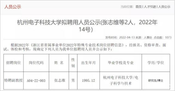 就比如杭州电子科技大学的张志维博士,5年硕博期间以第一作者身份发表了10多篇sci论文,其中9篇发表于美国电气与电子工程师协会(IEEE)期刊。博士答辩后,就被特聘为杭电的副教授。