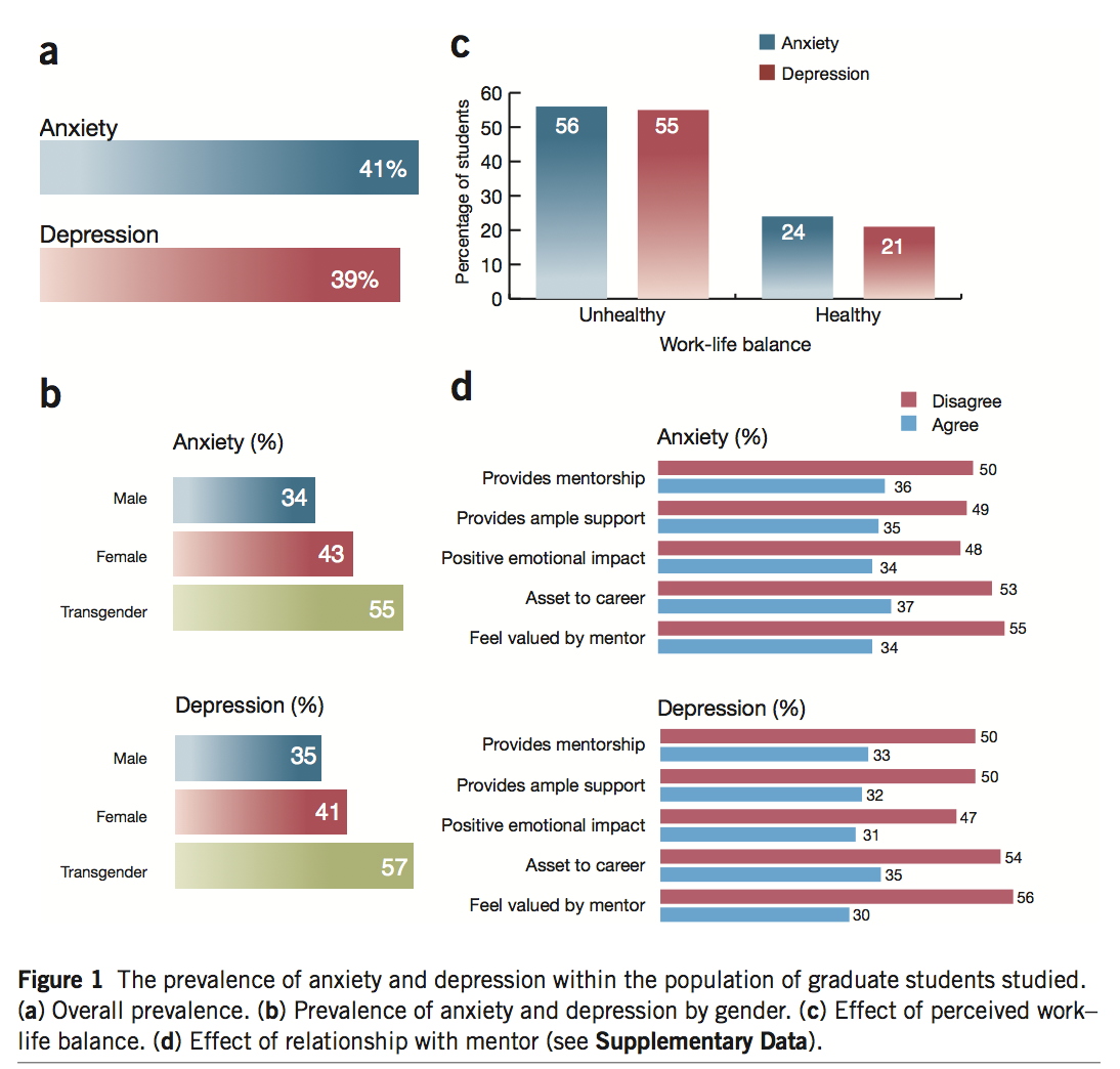 压力会随时存在,而且当涉及到一些对个人前途和命运息息相关的事情时,比如迫在眉睫的最后期限--无论是科研项目还是期刊小论文的修回时间,还是博士学位大论文的关键时间节点可能都会带来极大的压力。事实上,一切压力都在你身上,基本只有你一个人承担。正如Evidence for a mental health crisis in graduate education的研究发现,博士生患有高水平的精神障碍,这可能与他们必须承受的高强度压力有关。