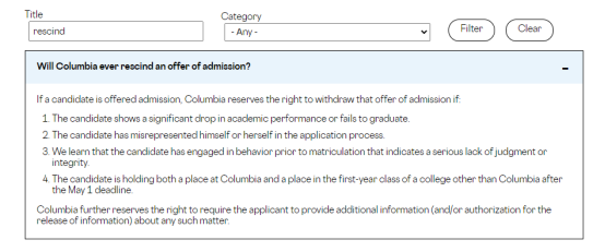 哥伦比亚大学官方网站上关于撤销录取的解释