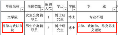 公寓辅导员岗位一般是没有专业限制的。有专业限制的通常与所在学院的专业有关,毕竟要住宿舍管理学生,相关专业比较好开展工作嘛。以云南师范大学为例,哲学与政法学院招聘要求专业为法学、政治学和马克思主义理论。