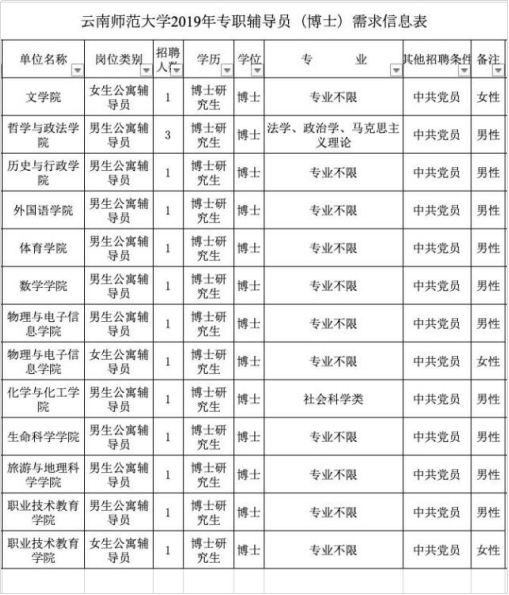 虽然相比教师岗,公寓辅导员的要求会低一些,但985高校招聘,硕士门槛其实已经很普遍。甚至云南师范大学2019年招聘辅导员已经要求博士了,校方表示“学生思想政治教育工作不是一般学历或者一般老师可以做的。”