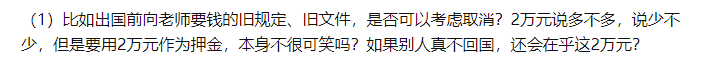 可是笔者认为:高校与老师之间关于2万元的「出国保证金」的理解,存在误差。