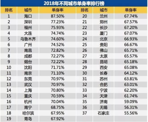 而另一方面,据智联招聘统计数据显示,2018年,我国主要城市职场单身率超50%。