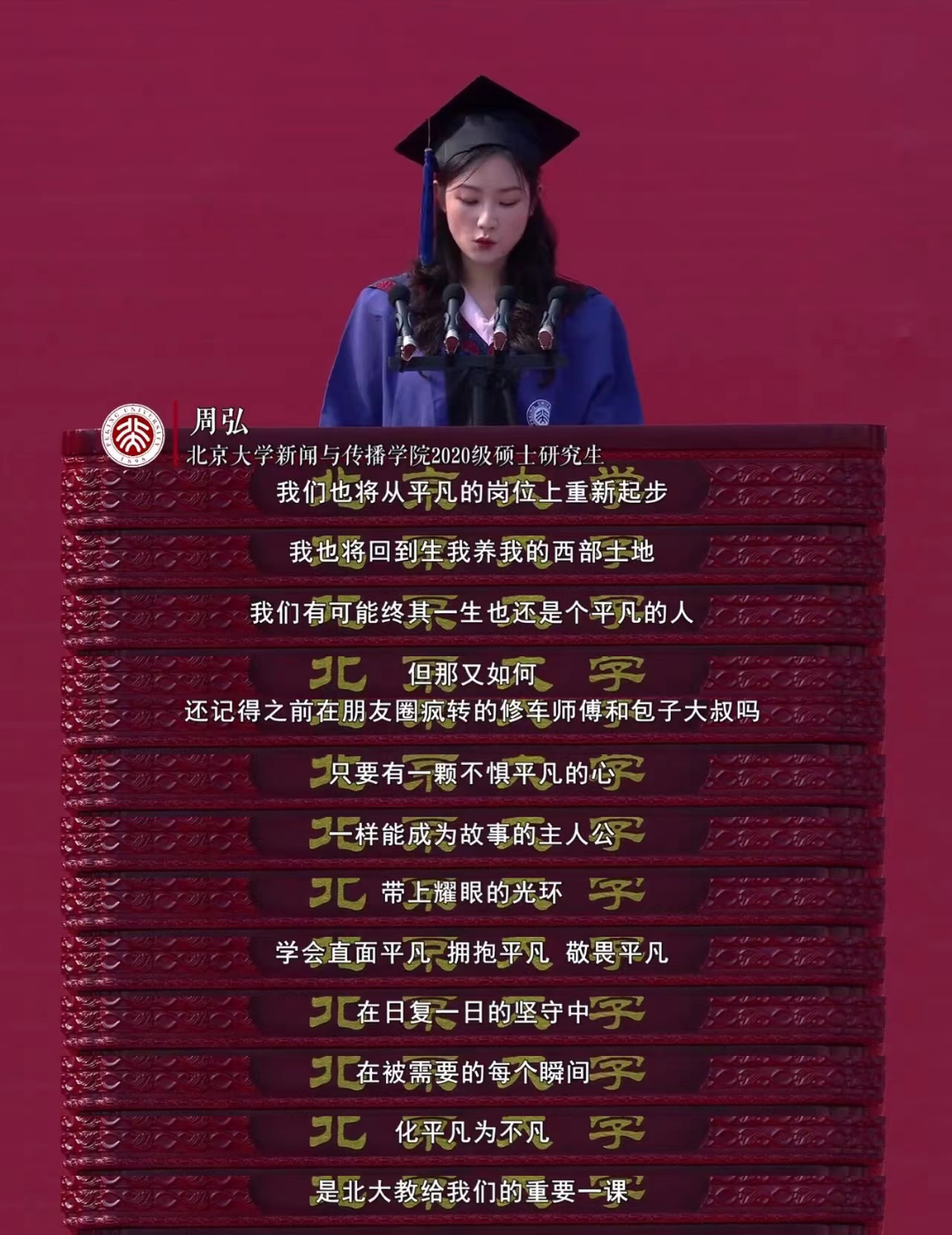 这不,今年一位叫周弘的北大硕士在毕业典礼上的致(颜)词(值)就引发了热烈讨论……