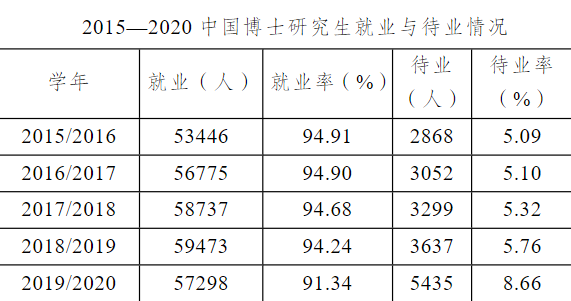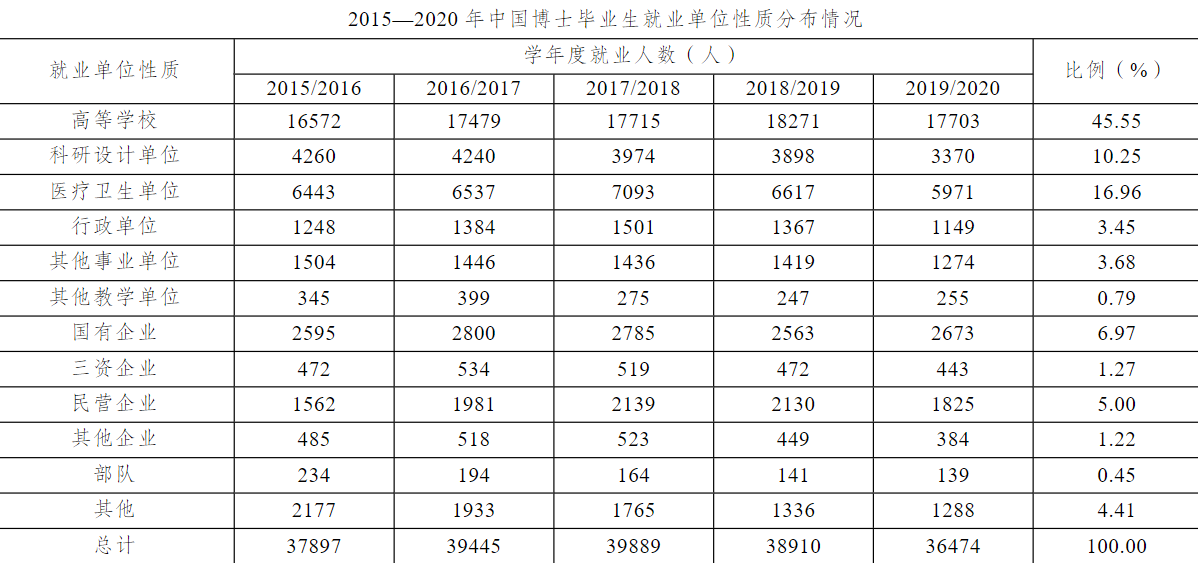 数据来源:我国博士毕业生去向及就业特征分析——基于2015-2020年博士毕业生数据的分析