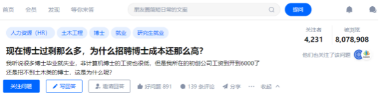 在知乎看到这样一则提问“现在博士过剩那么多,为什么招聘博士成本还那么高”,关注人数还挺多,我起初好奇这个招聘成本是有多高,仔细一看“工资开到6000”!