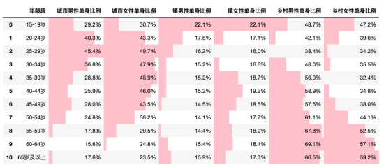根据人口普查得到的数据资料可知,经济发达地区适婚年龄的单身青年较多,女性群体更为明显。如,20岁以上的城市女性单身比例明显高于同年龄段城市男性。同时,适婚年龄段乡镇女性群体的单身比例远低于同年龄段城市女性。