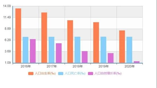 与此同时,近五年在死亡率维持稳定的情况下,由于结婚登记人数递减导致的人口出生率降低,自然增长率也开始锐减。由近日发布的《中国统计年鉴2021》可知,去年全国人口出生率仅为8.52‰,首次跌破10‰,创下了1978来的新低。