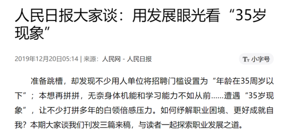 随着就业市场竞争持续加剧,“35岁现象”俨然成为全社会关注的热点问题:不仅公务员招考年龄要求在35岁以下,很多企业也将招聘的门槛限定在35岁,高校教师在35岁后申请基金受到限制……35岁俨然成为职场“生死线”,事业危机引发了职场打工人的焦虑甚至是恐慌。