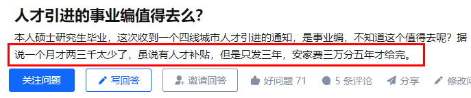 最后,借用知乎网友的一句话:“我当初走人才引进去县城,一是为了钱,想要安家费,二是为了可以多陪陪父母,但这两个都没有实现,只是让我觉得浪费了时间。”