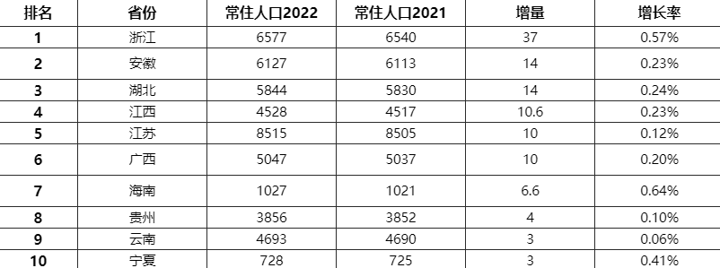 2022年,是我国内地人口总体上进入“负增长”的一年,即便如此,仍然有不少省份的人口是净增长的。