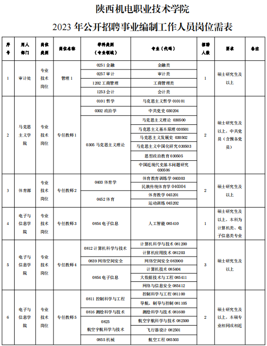 信息来源:《陕西机电职业技术学院2023年公开招聘30名事业编制工作人员公告》