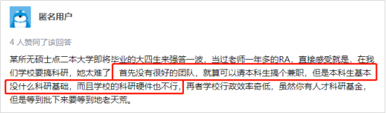 以某高校为例,没有硕士点,教师只能请本科生兼职做科研,但本科生的科研基础有限,基本上教师只能靠自己。