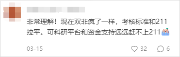 “原因嘛,一是看中城市,那所985高校在中西部,离家比较远,而双非高校离家近,还在大城市,生活品质相对好一些;二是单纯不想卷了,去双非就是想着宁当鸡头,不做凤尾。”